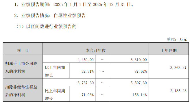 摘要預(yù)計(jì)2025年歸母凈利潤(rùn)4450萬(wàn)元至6310萬(wàn)元,同比增長(zhǎng)32.31%-87.62%;扣非凈利潤(rùn)預(yù)計(jì)3737.3萬(wàn)元至5597.3萬(wàn)元,同比增長(zhǎng)71.03%-156.14%。